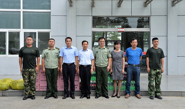 為進一步增進軍民關系,在“八一”建軍91周年之際,8月1日上午,鹽房定遠項目徽鹽安徽飯店領導班子一行來到定遠縣消防大隊走訪慰問官兵,在為他們送上西瓜、飲料、礦泉水等慰問品的同時,也轉(zhuǎn)達了中共徽鹽地產(chǎn)定遠項目黨支部對他們節(jié)日的問候與祝福。