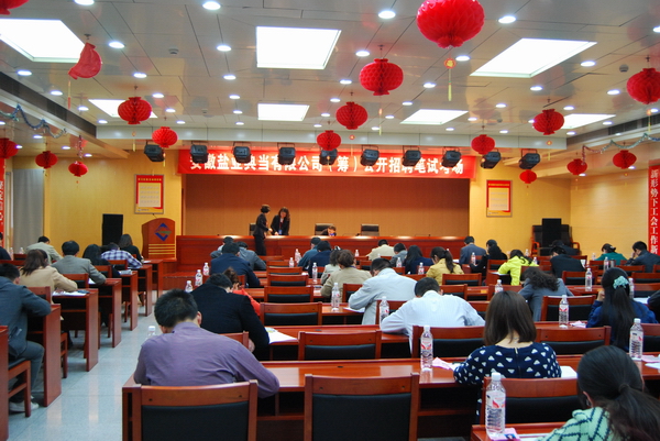 4月26日下午,安徽鹽業典當有限公司(籌)經營管理人員公開招聘筆試在鹽業大廈23樓會議室舉行。本次招聘職位為公司總經理1名、財務部經理1名、客戶經理3名。招聘公告通過《安徽日報》、《新安晚報》、《合肥晚報》、新安人才網等媒體發布后,社會反響較為強烈,參與人數眾多。經資格審查后,來自省內的59名中青年人才參加了考試,考聘比例為11.2:1,個別職位考聘比例達到21:1。